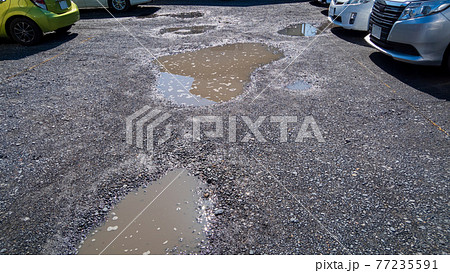 砂利の駐車場の水たまり