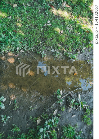 未舗装道路 水たまり