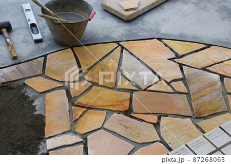 天然石のタイルはり 外構工事 エクステリア アプローチ