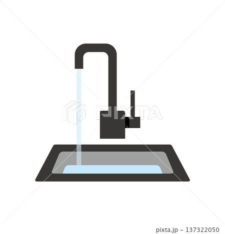 モダン黒蛇口の水が流れるシンクフラットイラスト