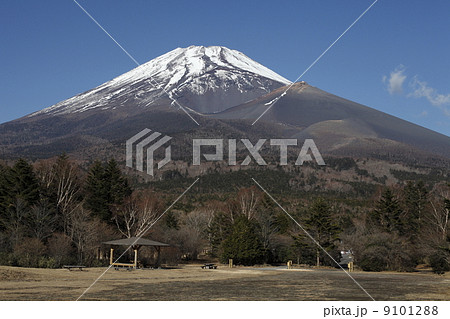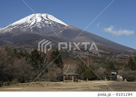 (静岡県)降雪した水ヶ塚公園から望む、富士山頂