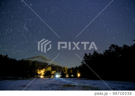 富士山スカイラインの水ヶ塚公園から富士山と北天の星空のZTF彗星を望む(静岡県)