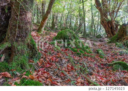屋久島白谷雲水峡 色づいた落ち葉と神が宿る森(秋