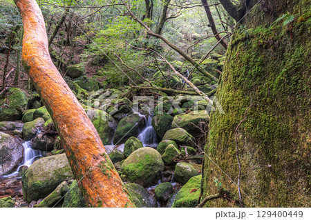 屋久島国立公園 木漏れ日と苔むす沢(秋
