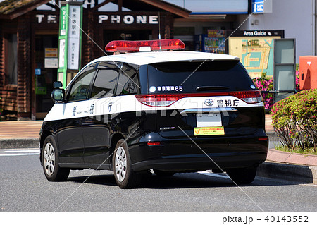交通取り締まりをする警視庁東京湾岸警察署の警察官とパトカー