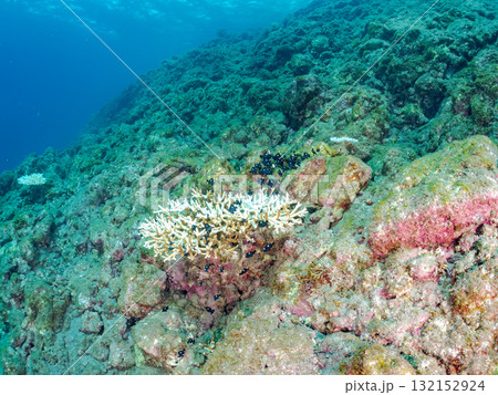 高海水温が続いているのでサンゴの白化現象が起きている。 ヒリゾ浜中木南伊豆町伊豆半島静岡県2024