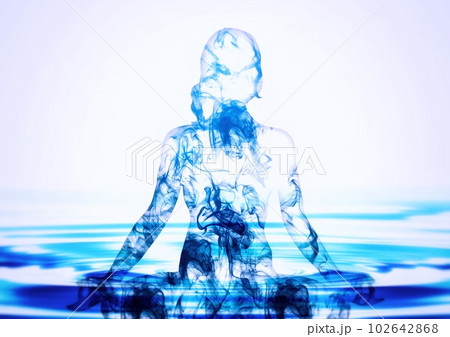 水中で瞑想する女性のイラスト