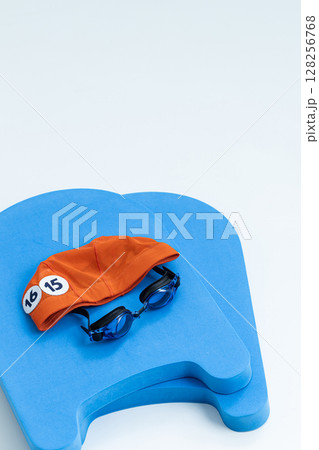 ビート板と水泳帽子