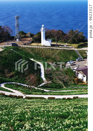 越前岬灯台と水仙の大群生/越前岬水仙ランド/越前加賀海岸国定公園