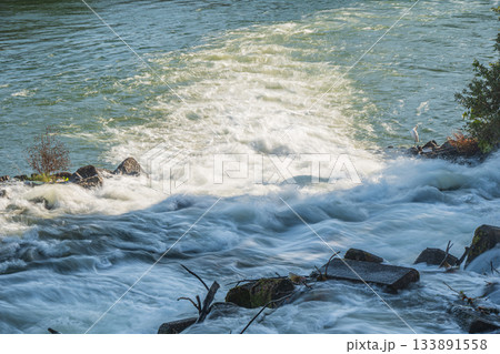 三栖洗堰から宇治川へ注ぎ込む急流 京都市伏見区