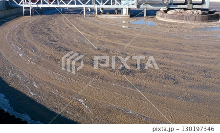 Surface of Water Covered With Mud in Treatment Plant During Processing Activities in Daylight
