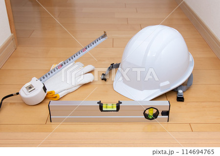 水平器とメジャーとヘルメット