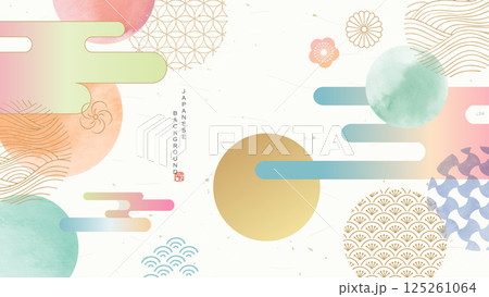 和柄で和風モダンな背景。日本風なフレーム。水彩の和柄がきれいな壁紙。