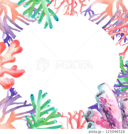 Corals set watercolor on isolated white background. Beautiful Marine clipart. Colorful hand painting coral closeup