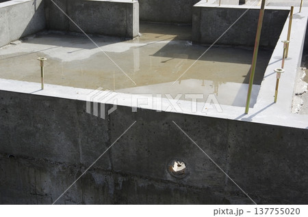 ベタ基礎にたまった水を抜く穴の様子