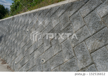ヘリンボーン模様のようなコンクリートブロック - 擁壁(川崎市)
