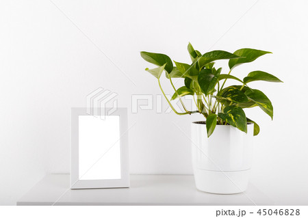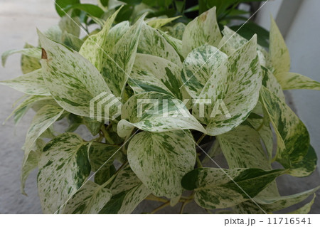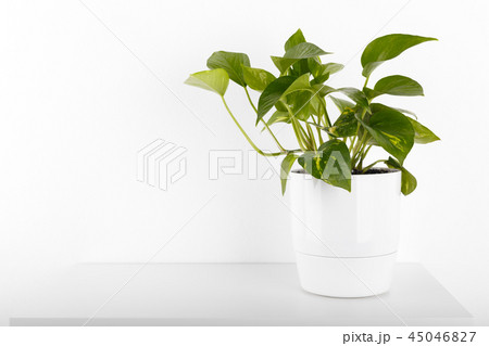 pothos pearls and jade devil ivy plant in white pot with white isolated background
