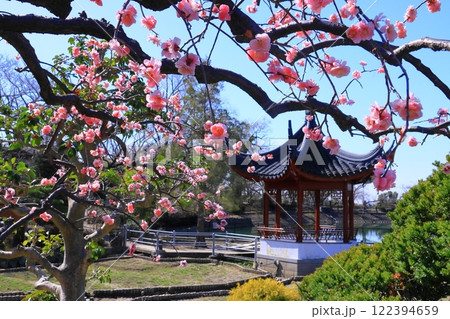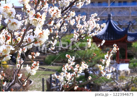 水月公園(大阪府池田市)斎芳亭近く満開の梅