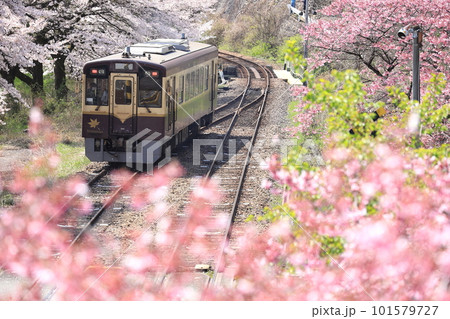 わたらせ渓谷鐵道「水沼駅周辺の桜とトロッコわたらせ渓谷号」