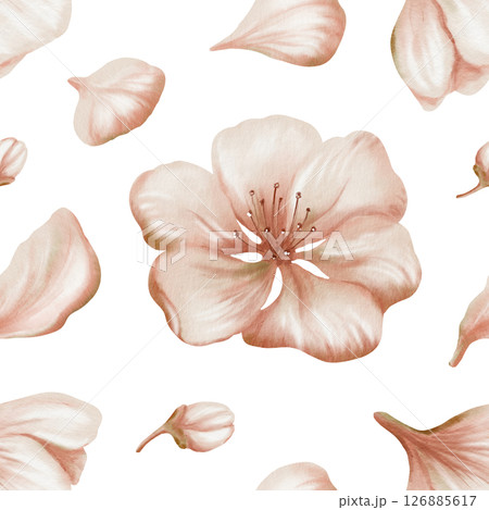 Cherry blossoms and delicate buds,petals in seamless pattern on transparent background. Soft watercolor floral illustration for spring wedding decor, botanical branding or romantic stationery design
