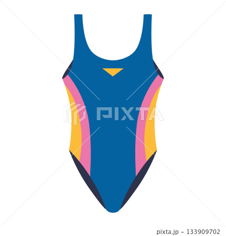 Blue and pink one piece swimsuit for swimming and water sports activities. Trendy modern vector illustration isolated on white background, hand drawn, flat design