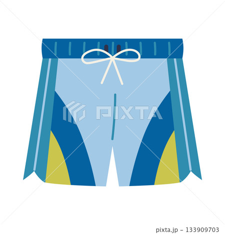 Blue swim trunks for men, designed for swimming, surfing, or summer activities. Trendy modern vector illustration isolated on white background, hand drawn, flat