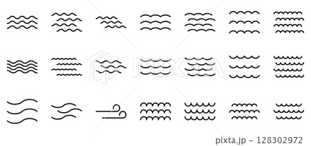 波 シンプル アイコン ベクター 線画 青 水色 セット