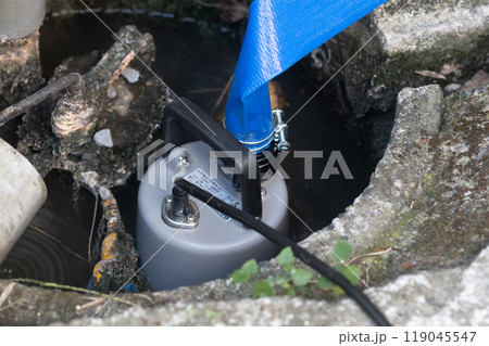 水中ポンプ 水溜から水をくみ上げている排水ポンプ
