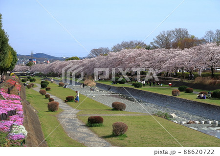 日本の春 秦野、水無川沿いの桜並木
