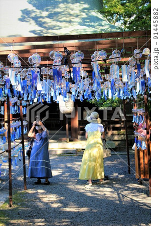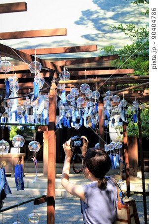 水無瀬神宮の風鈴を撮影するカメラ女子の画像素材(写真・イラスト) 1ページ目