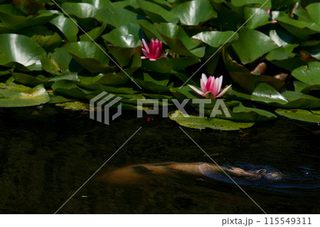 公園の風景 池に咲くスイレン 宮城県川崎町