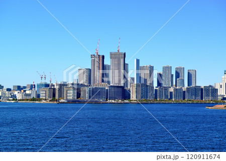 竹芝桟橋から東京湾の風景 冷凍倉庫と勝どきタワーマンション群(東京都港区)