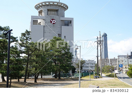 下関警察署海峡交番&遠くに海峡ゆめタワー