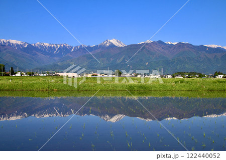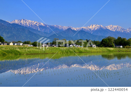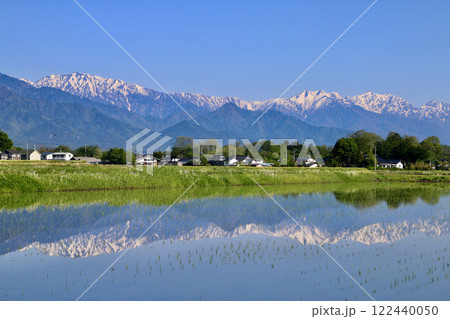 水田と北アルプス・水鏡(長野県・安曇野市)