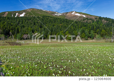 雪山と水芭蕉の群落