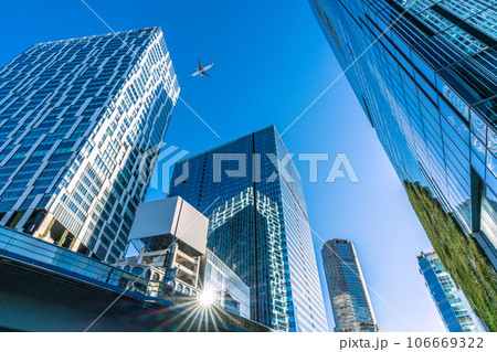 日本の東京都市景観 航空機や渋谷駅などを望む。新時代へ