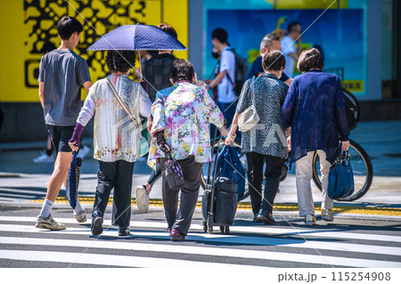日本の東京都市景観 マ姿の高齢者らが…猛烈な日差し…マ洗脳からの呪縛はいまだ…=渋谷の宮益坂下