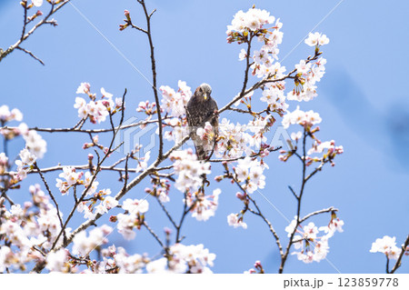 桜咲く春日和と野鳥(ヒヨドリ) 奥球磨県立自然公園・市房ダム周辺の野鳥 (熊本県球磨郡水上村湯山)