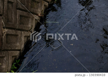 ヘドロの背景素材・かいぼり工事で干上がった池底のヘドロ・横位置