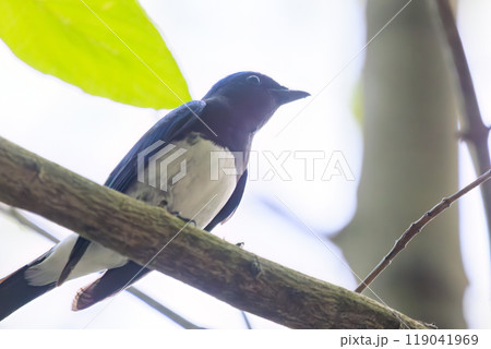 新緑の中、大きく美しい声でさえずる美しいオオルリ(ヒタキ科)神奈川県-2023年