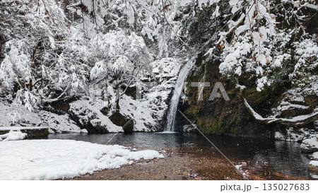 千葉県大多喜町養老渓谷 秋の夜の粟又の滝付近の紅葉