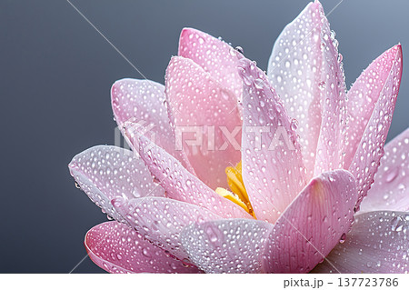 Close-Up of Pink Water Lily Flower with Raindrops on Petals Against a Soft Background