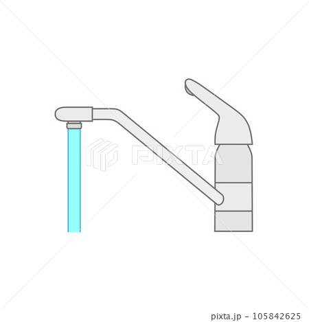 水が出ているシングルレバー式混合水栓(キッチン用蛇口、ステンレス、ストレート)