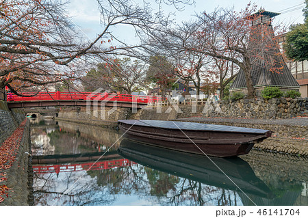 岐阜県大垣市 水門川と大垣市役所の市庁舎