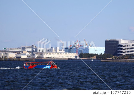 横浜港を行く水陸両用バス「スカイダック」SKY Duck