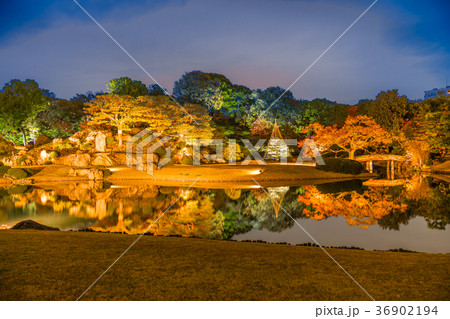 日本の秋 六義園の紅葉ライトアップ