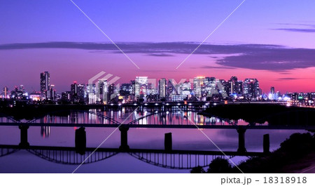 淀川に映る梅田の夜景