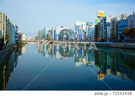 中州懸橋より那珂川沿いの街並みを望む