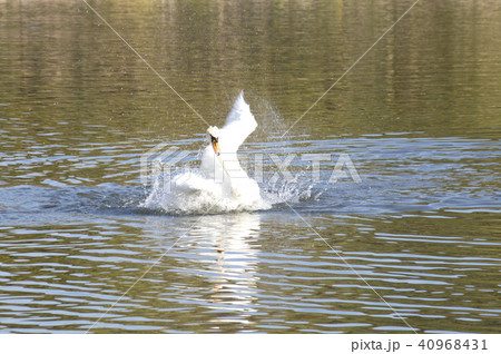 昆陽池公園にいるコブハクチョウの水浴び