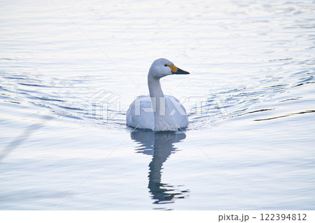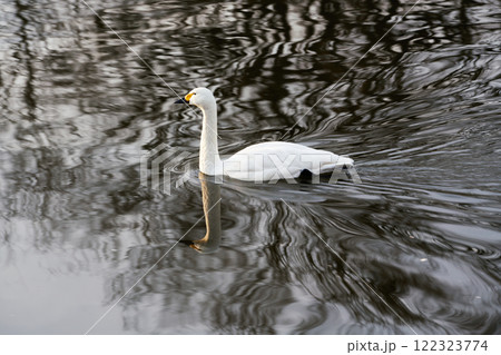 のんびり浮かんでいるハクチョウ 飛来した田舎の川